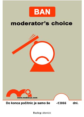Kar se BANa na Mobisuxu tiče - ko cenzura ni delovala, sem dal link na www.mobile.si , kot dokaz, da cenzura ne deluje. Cifra je link spremenil v www.nore babe.com, BANa pa nisem dobil.